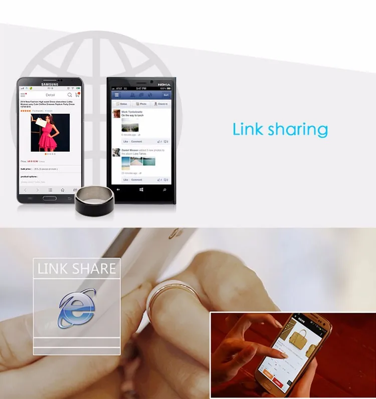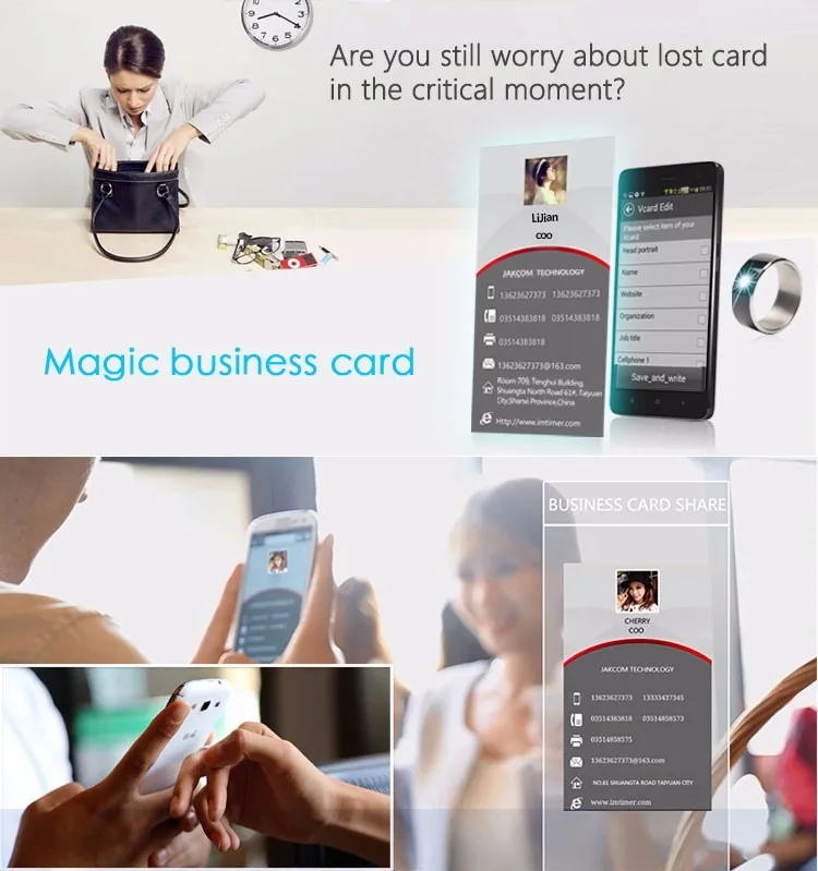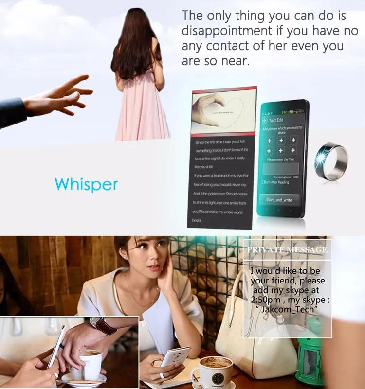 The Jakcom smart ring is a Wearable electronic components, operate the mobile function and share the data by NFC wireless frequency communication technology , the functions of the advanced design as following: Private Note ,Screen lock ,APP lock, Quick start, share business card, share internet link, share the text and share online file. Original Health Module