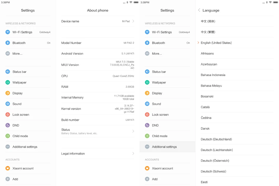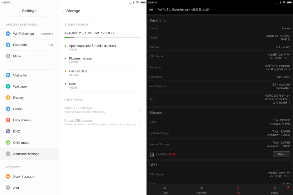 | Basic Information | Model | Xiaomi MiPad 2 |