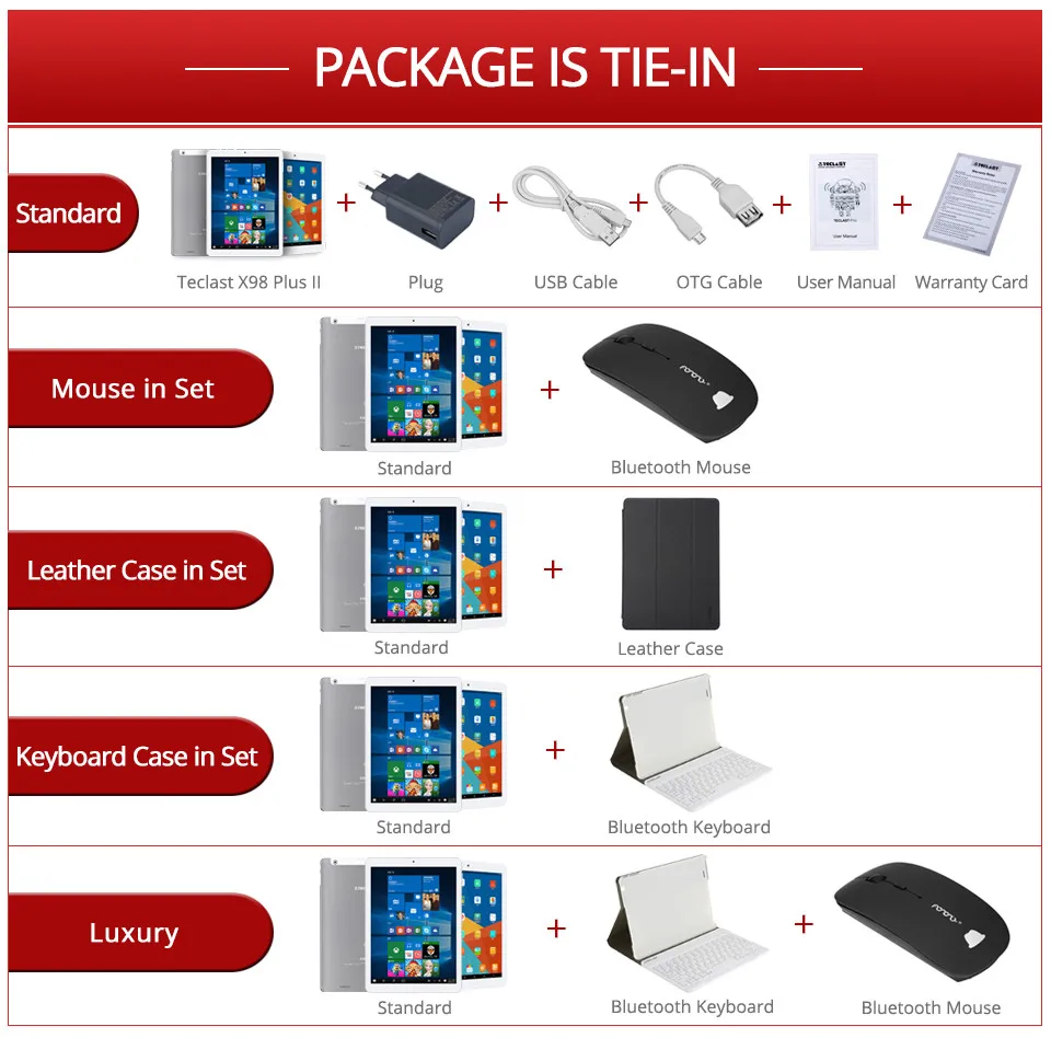 Teclast X98 Plus II 9.7 ” Intel Z8300 Android 5.1 & Windows 10 Dual OS Quad Core 4G RAM 64G ROM IPS Retina 2048*1536 Tablet PC