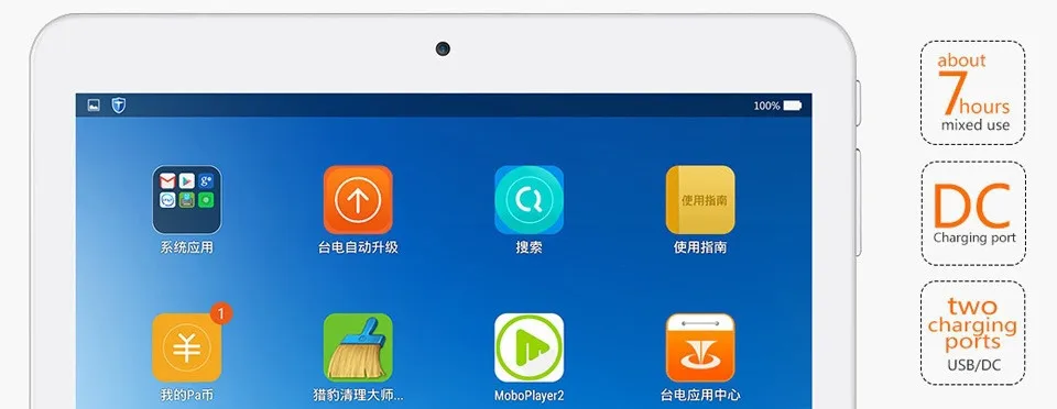 8000mAh battery can stand by with up to 7 hours of mixed use battery life.DC charge ports supports 5V-2.5A quick charge.